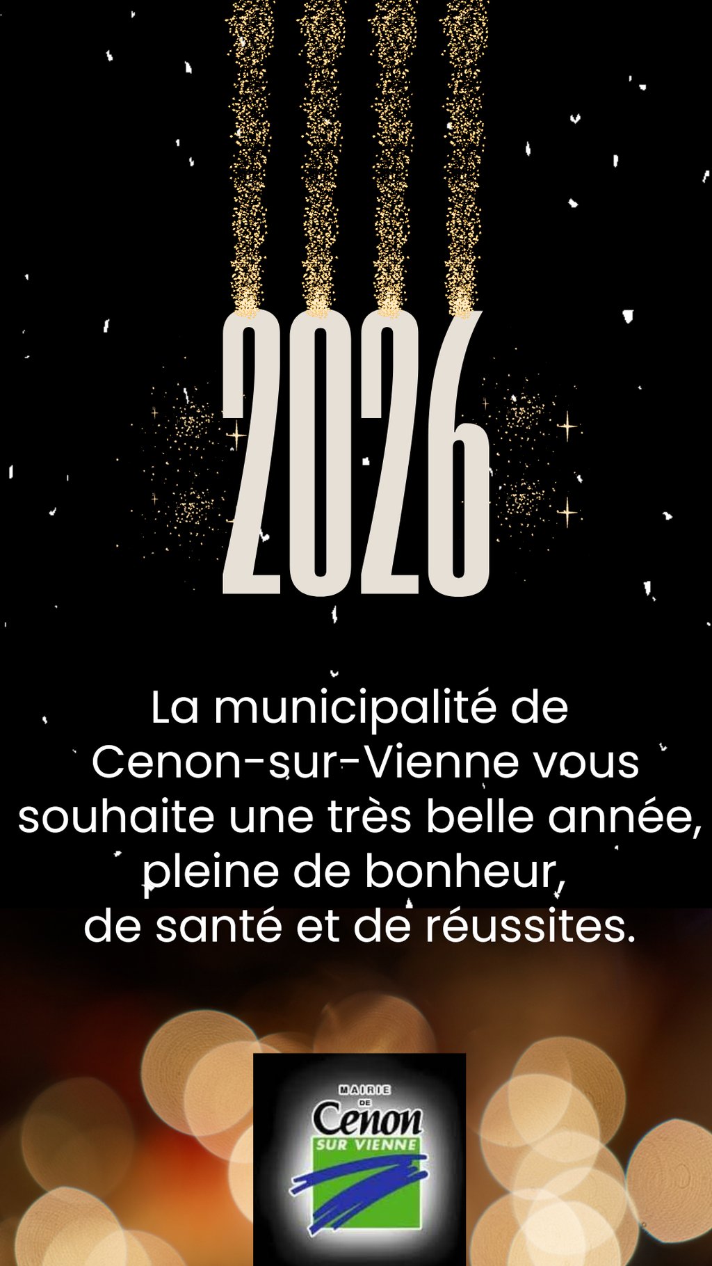 Mme le Maire et toute lâĂ©quipe municipale de Cenon-sur-Vienne vous adressent leurs vĆux les plus chaleureux : santĂ©, bonheur et rĂ©ussite pour cette nouvelle annĂ©e.