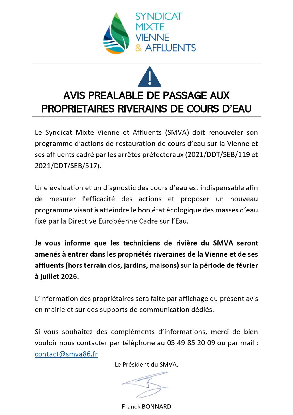 👉 Cet avis est affiché en mairie et diffusé sur les supports de communication du SMVA.