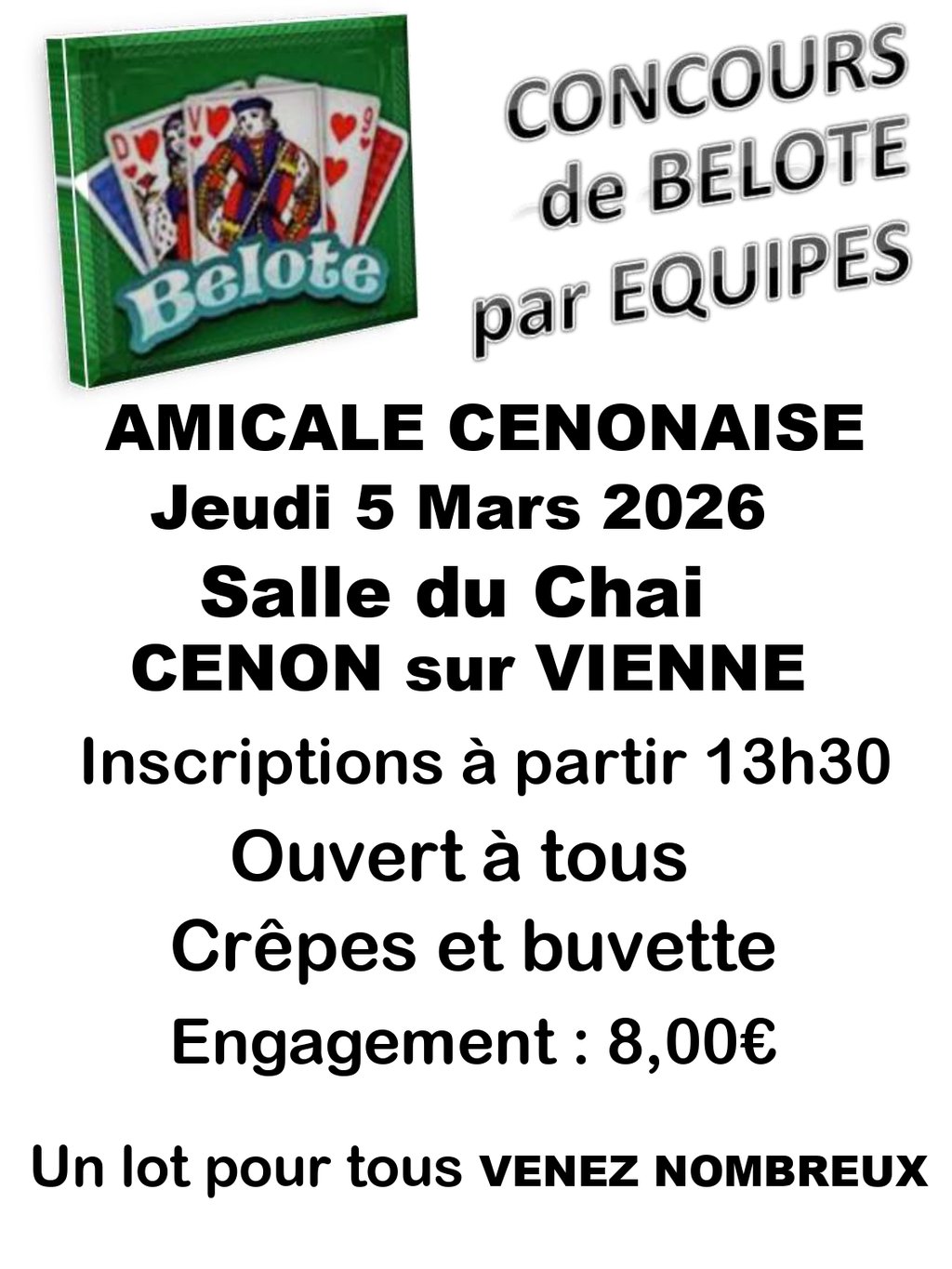 🎉 CONCOURS DE BELOTE – JEUDI 5 MARS 2026 🎉